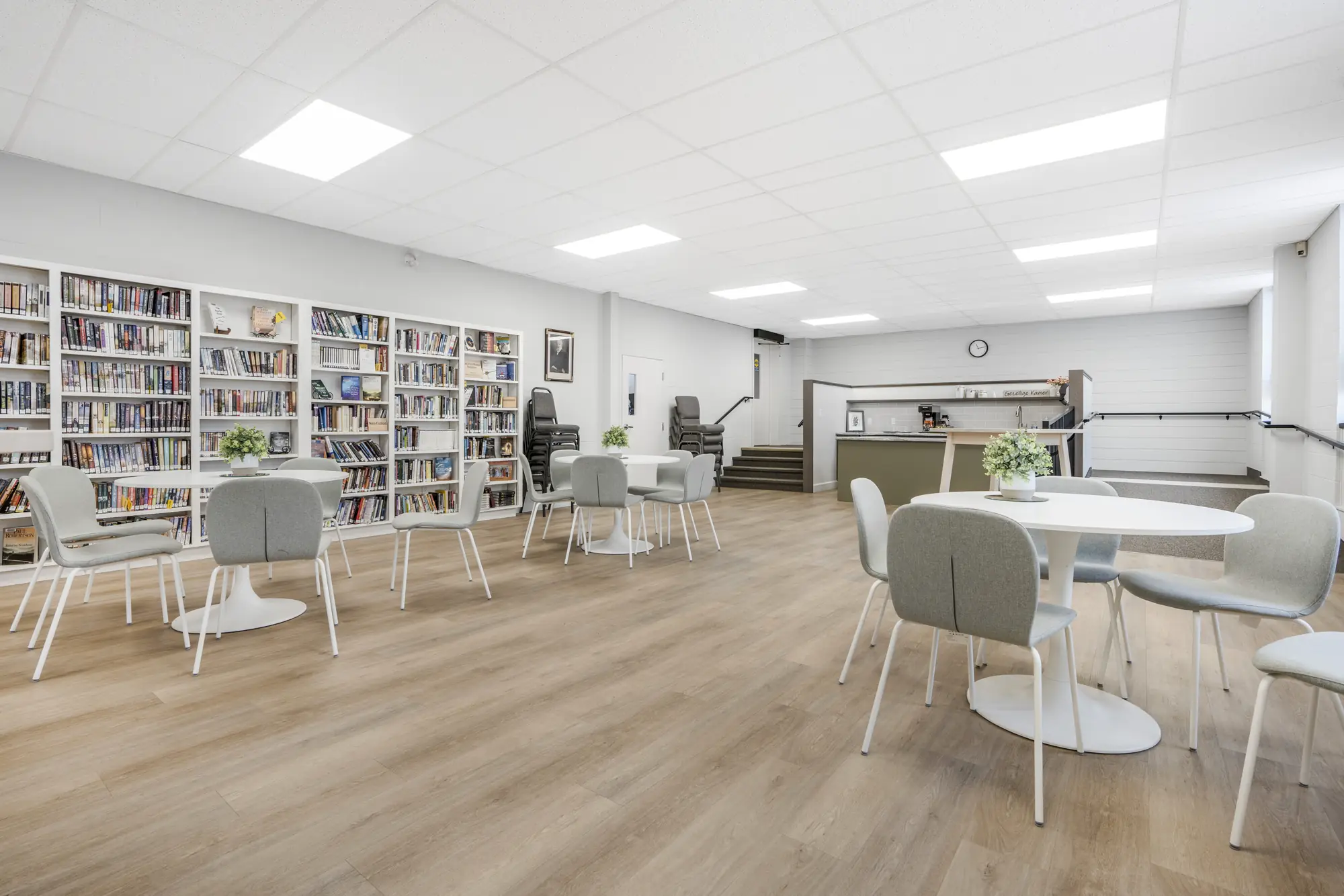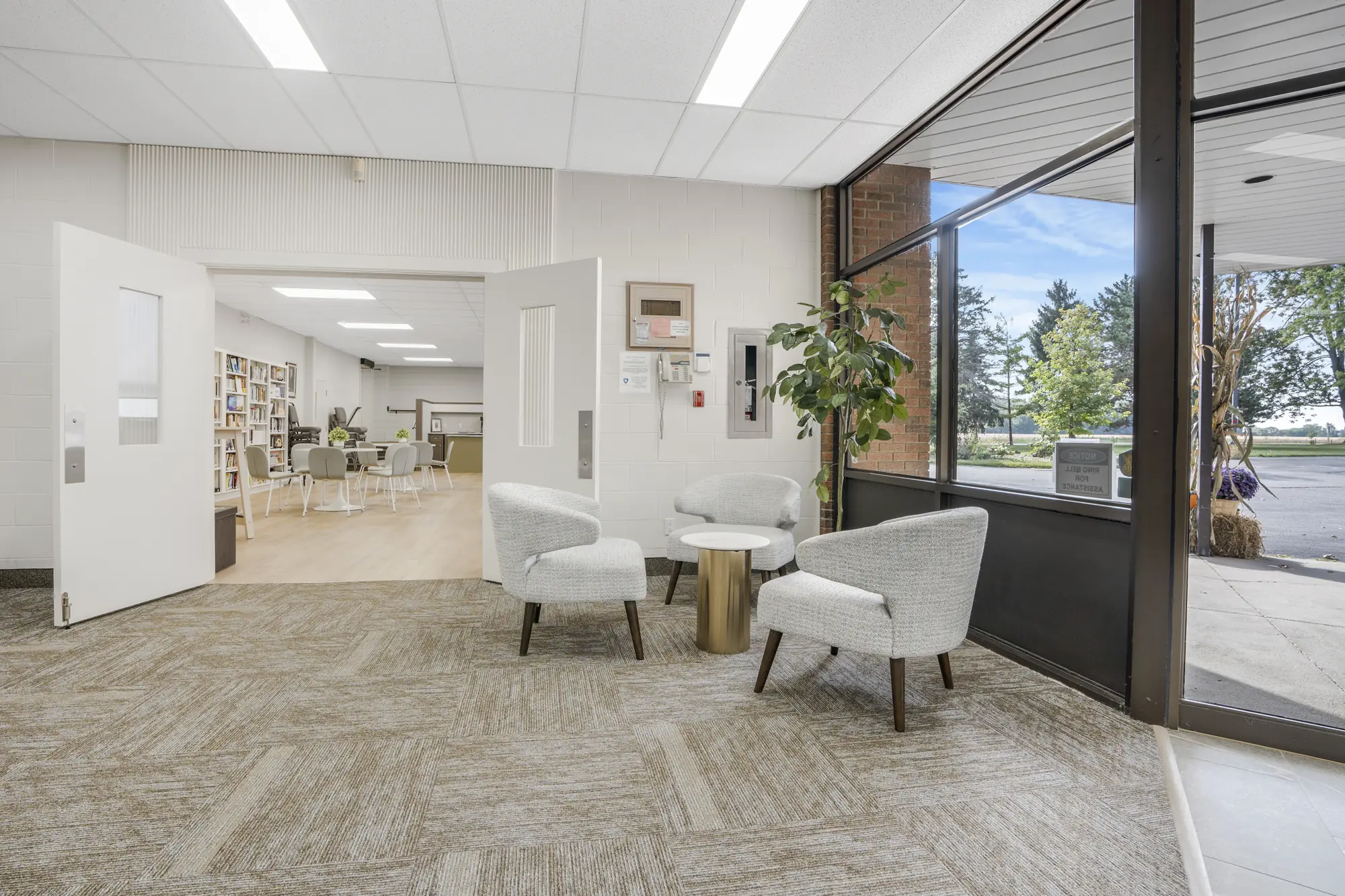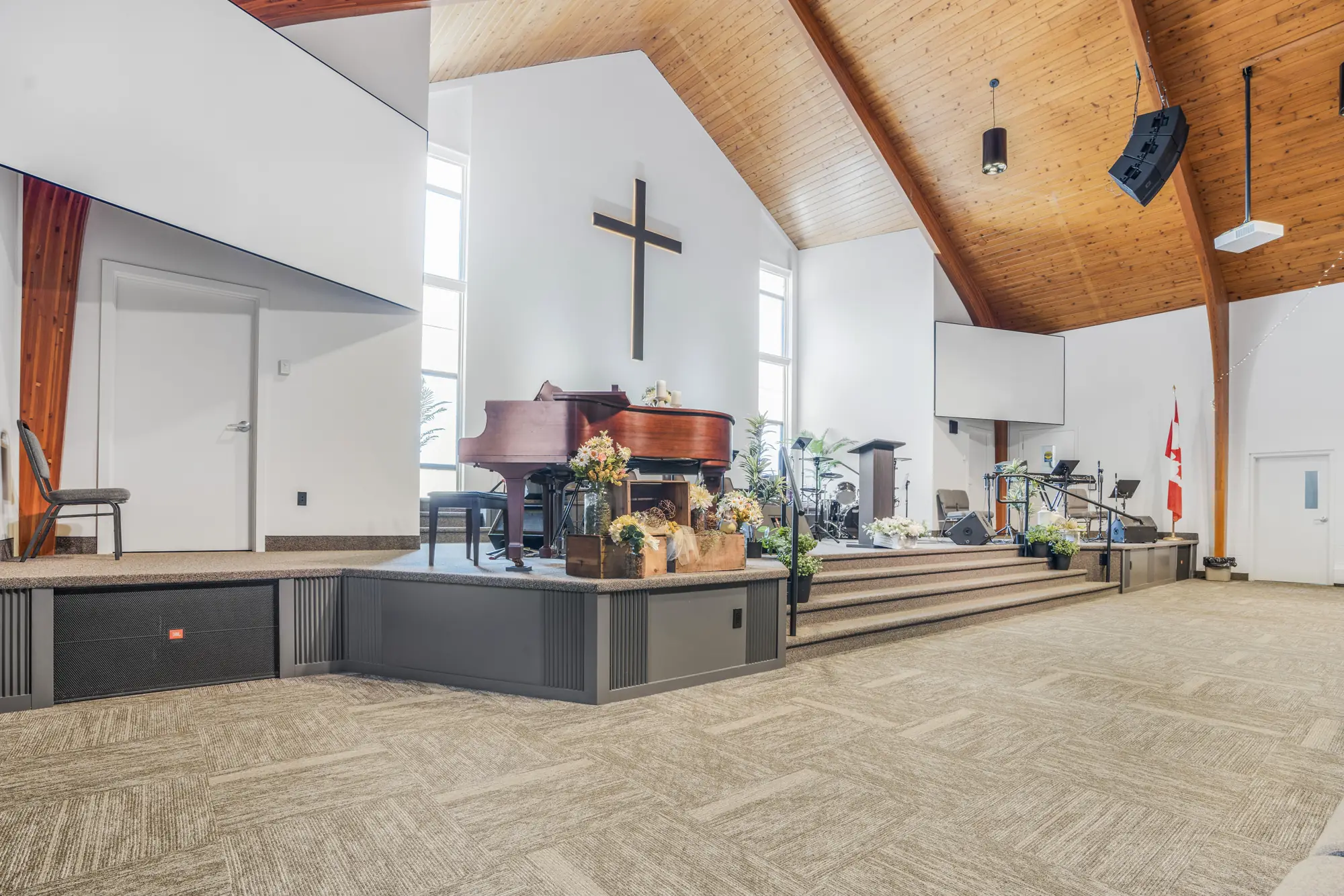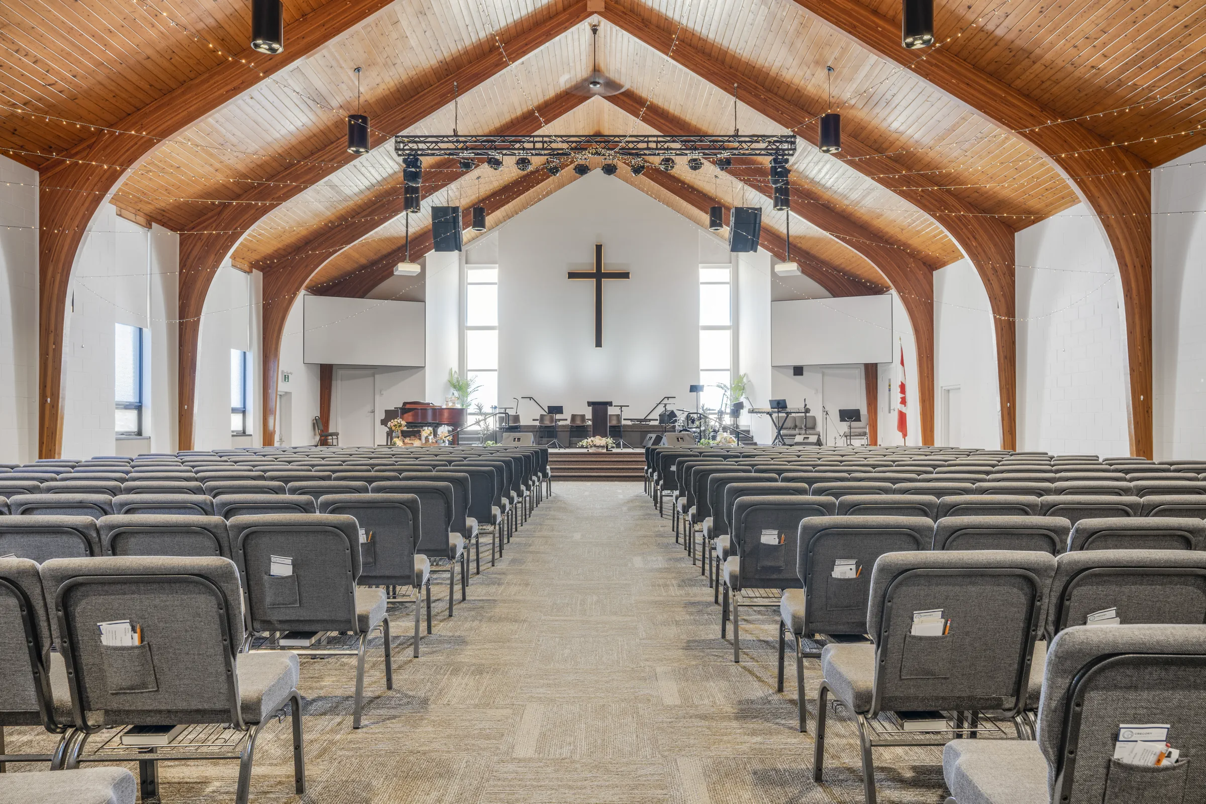 EFA achieved this through strategic interior renovation: restoring the sanctuary’s architectural integrity and converting under-utilized spaces into a warm, inviting communal area. Inclusive design was at the forefront, including an accessible ramp for stage access and baptismal tank viewing.